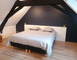 À l'étage, 2 chambres séparées par un coin détente (mezzanine) et une salle de douche. (2 lits de 90x200) + (lit de 180x200).