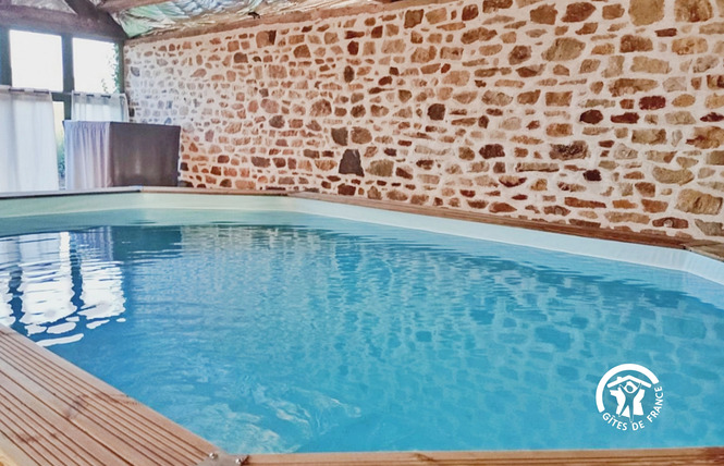 Piscine couverte sur la propriété (option), chauffée de juin à mi septembre. Partagée avec les 2 autres logements.