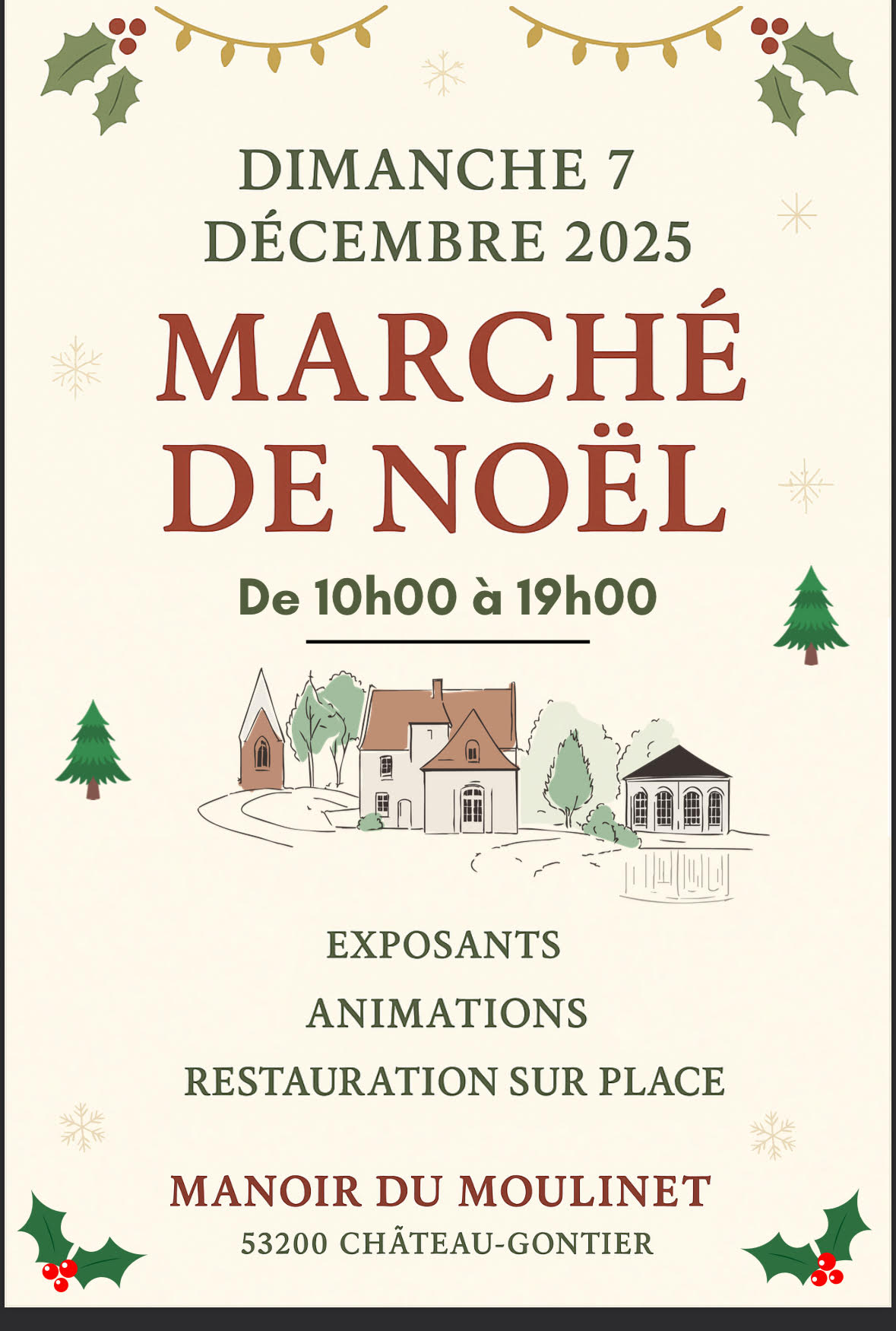 Marché de Noël au Manoir du Moulinet le dimanche 7 décembre 2025 de 10h à 19h.